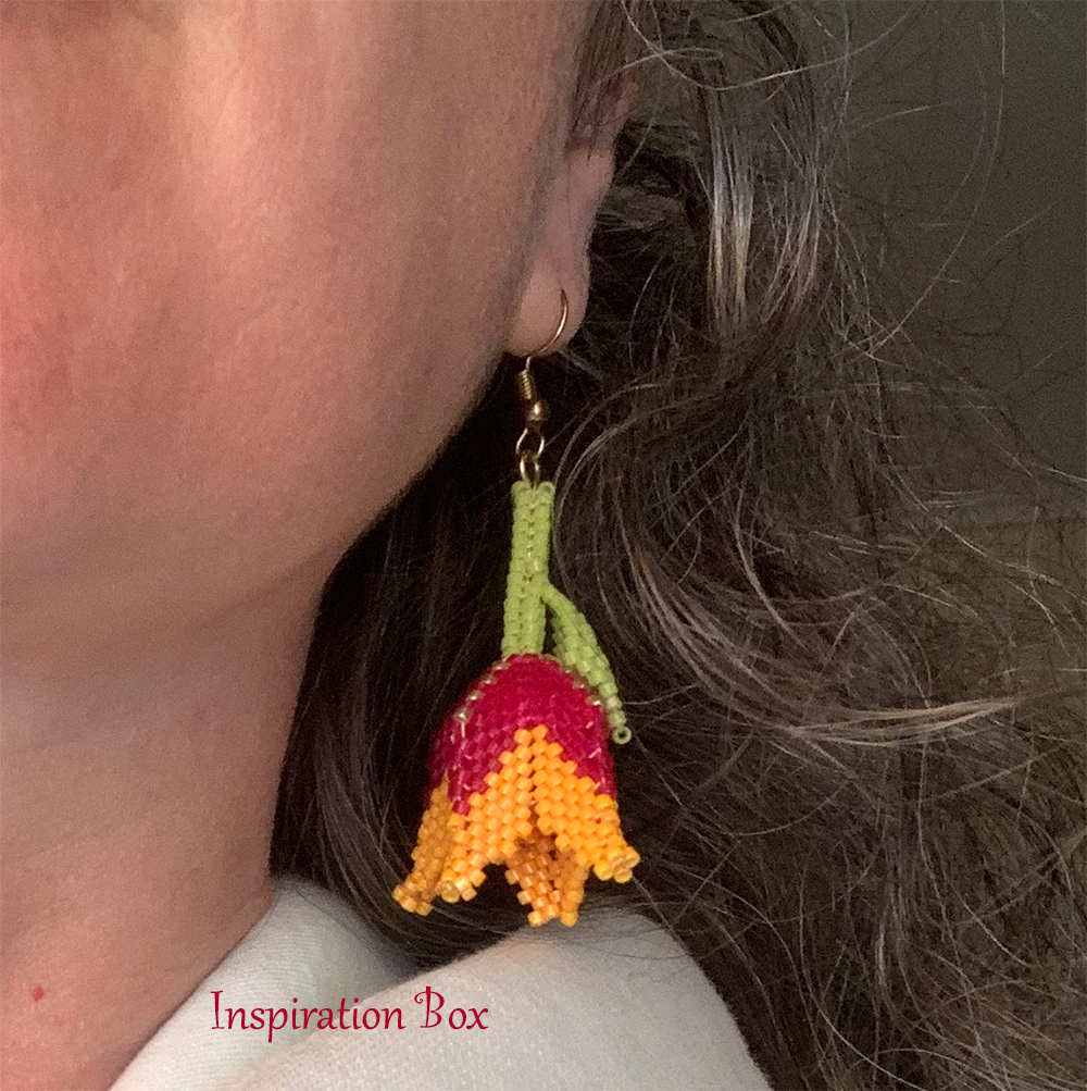 Κρεμαστά σκουλαρίκια Τουλίπες miyuki κίτρινο φούξια